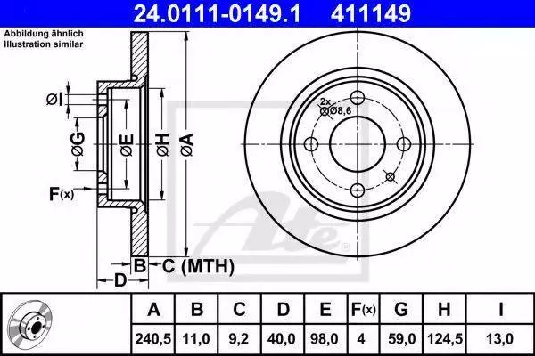 Диск гальмівний ATE 24011101491 на ALFA ROMEO 155 (167)