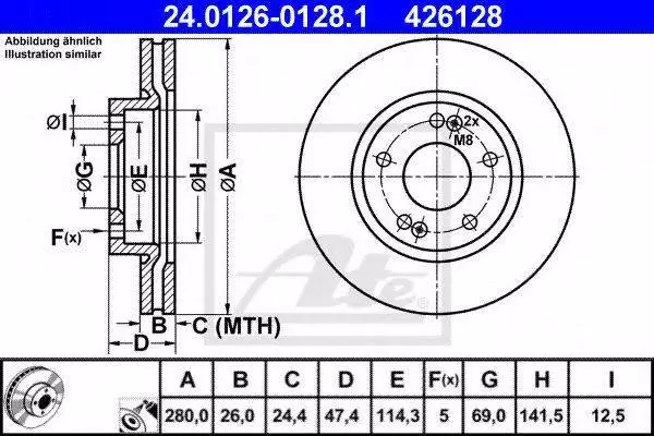 Диск гальмівний ATE 24012601281 на KIA SPORTAGE (JE_, KM_)