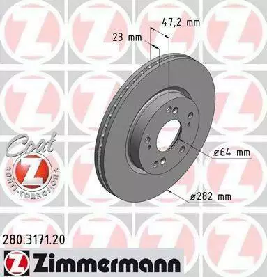Диск гальмівний Coat Z ZIMMERMANN 280317120 на HONDA EDIX (BE)