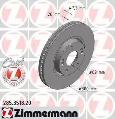 Диск гальмівний Coat Z ZIMMERMANN 285351820 на KIA SPORTAGE (SL)
