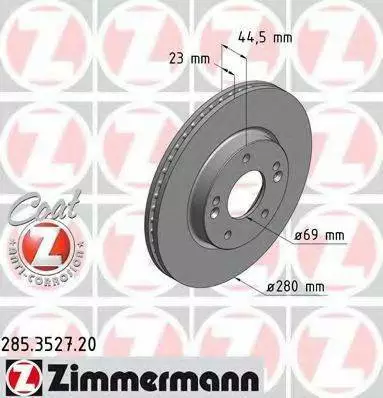 Диск гальмівний Coat Z ZIMMERMANN 285352720 на HYUNDAI ELANTRA GT (GD)
