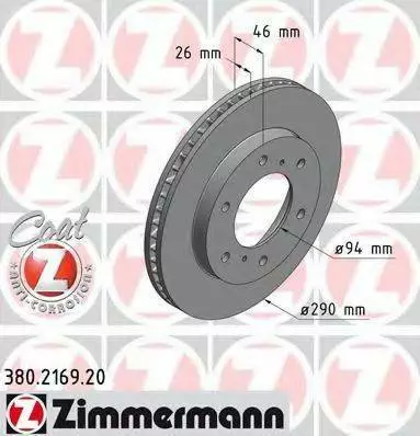 Диск гальмівний Coat Z ZIMMERMANN 380216920 на MITSUBISHI G-WAGON (K90)