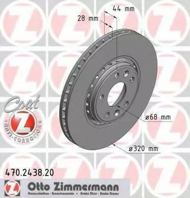 Диск гальмівний Coat Z ZIMMERMANN 470243820 на RENAULT LAGUNA III (BT0/1)