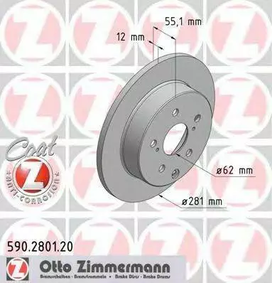 Диск гальмівний Coat Z ZIMMERMANN 590280120 на TOYOTA RAV 4 III (ACA3_, ACE_, ALA3_, GSA3_, ZSA3_)