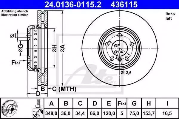 Диск гальмівний лівий ATE 24013601152 на BMW 5 (F10, F18)