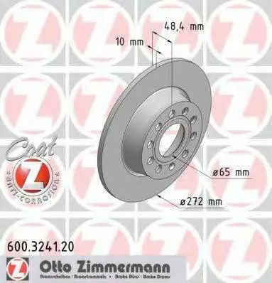 Диск гальмівний задній Coat Z ZIMMERMANN 600324120 на VW GOLF VI (5K1)