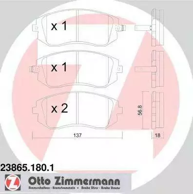 Колодки гальмівні дискові, к-кт ZIMMERMANN 238651801 на SUBARU XV CROSSTREK