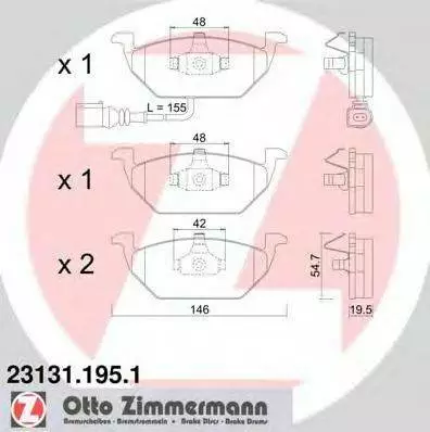 Колодки гальмівні дискові, комплект передні ZIMMERMANN 231311951 на SEAT IBIZA V (6J5, 6P5)