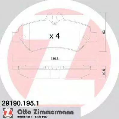 Колодки гальмівні дискові, комплект задній ZIMMERMANN 291901951 на MERCEDES-BENZ SPRINTER 3,5-t автобус (906)