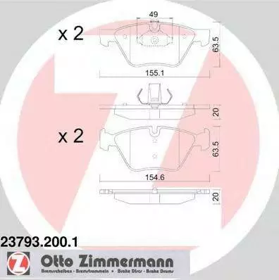 Колодки гальмівні дискові, комплект ZIMMERMANN 237932001 на BMW 5 седан (E60)
