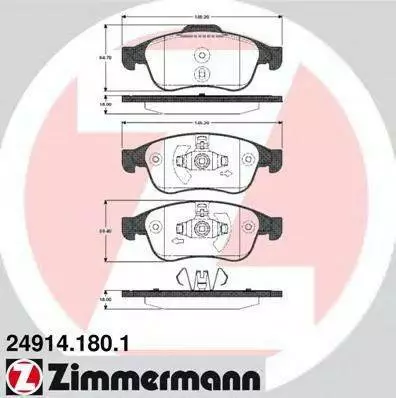 Колодки гальмівні Дискові передні, к-кт ZIMMERMANN 249141801 на RENAULT MEGANE CC (EZ0/1_)