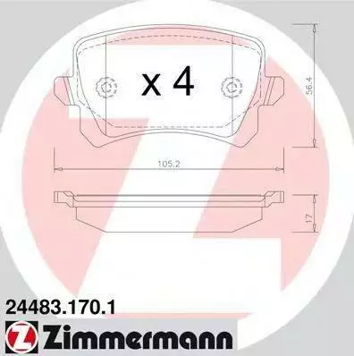 Колодки гальмівні дискові, задні ZIMMERMANN 244831701 на VW PASSAT (362)