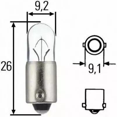 лампа розжарювання, T4W 12V 4W BA 9s HELLA 8GP002067121 на HYUNDAI SONATA (Y-2)