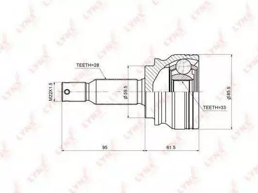 Внутрішнє зубчасте з'єднання з боку колеса: 33